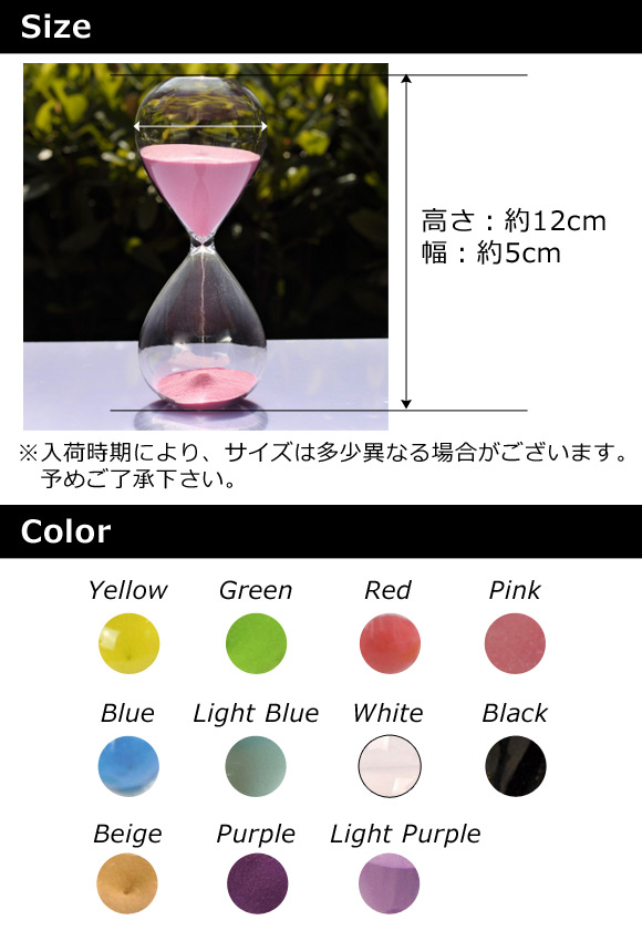 砂時計 5分計 シンプルなデザイン♪ インテリア雑貨におすすめ! 選べる11カラー AP-TH449 カラー: ブラック ホワイト レッド ブルー イエロー グリーン パープル ピンク ベージュ ライトパープル ライトブルー