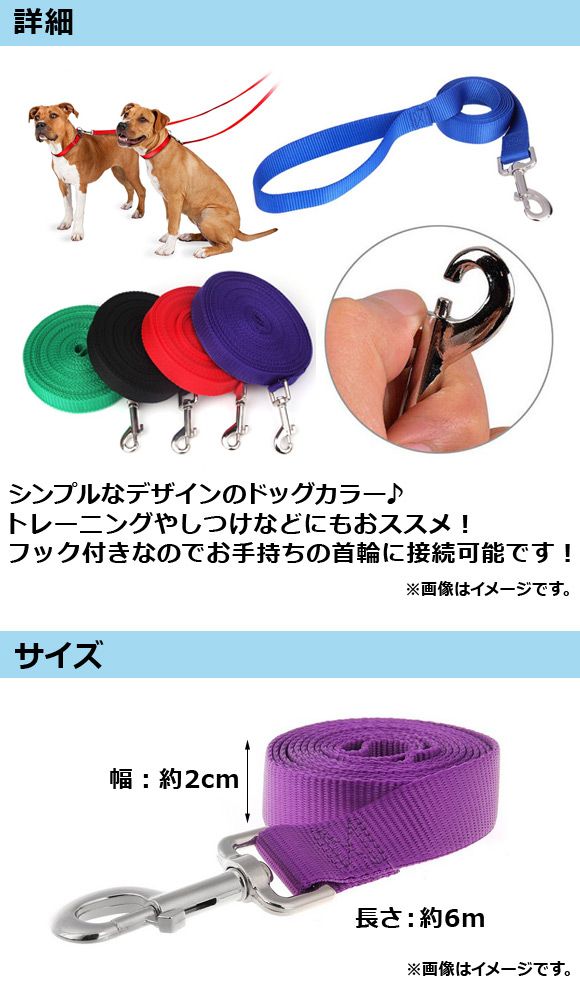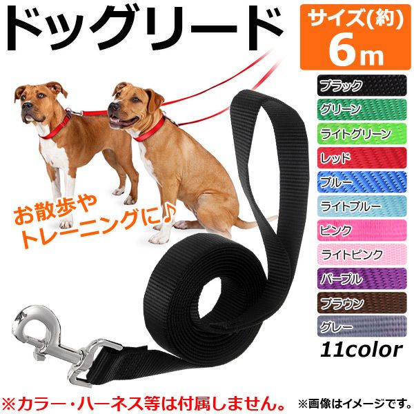 AP ドッグリード 約6m フック付き/カラーに接続可能! シンプルなデザイン♪ 選べる11カラー AP-TH669 カラー: ブラック レッド ブルー グリーン パープル ピンク グレー ブラウン ライトグリーン ライトピンク ライトブルー