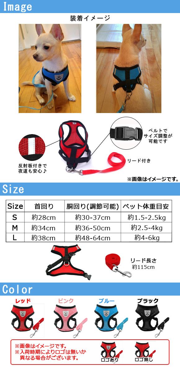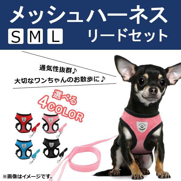AP メッシュハーネス リードセット お散歩を快適に 通気性抜群♪ 選べる4カラー 選べる3サイズ AP-TH916 カラー: ブラック レッド ブルー ピンク