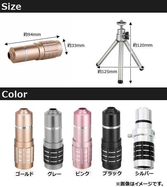 AP スマートフォン用望遠カメラレンズ 12倍 ミニ三脚付き カンタン装着♪ 選べる5カラー 選べる2タイプ AP-TH900 カラー: ブラック ピンク グレー ゴールド シルバー