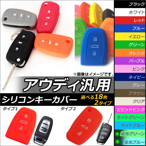 シリコンキーカバー アウディ汎用 愛車のキーを保護しながらドレスアップ! 選べる18カラー 選べる2タイプ AP-AS044 カラー: ブラック ホワイト レッド ブルー イエロー グリーン オレンジ パープル ピンク ネイビー グレー ブラウン クリア ビビッドピンク ライトグリーン ライトブルー 蛍光グリーン 蛍光ブルー