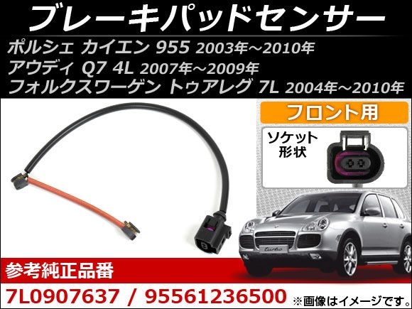458910140 7L0907637 95561236500 SKU224230 EVU ブレーキセンサー パッドセンサー 摩耗センサー ウェアセンサー PWI PadWearIndicater 摩耗警報装置 Touareg 2.5TDI 3.0TDI 3.0TSI 3.2 3.6FSI 4.2 4.2FSI 5.0TDI 6.0 ポルシェ アウディ カイエン Q7 Cayenne ウェアインジケータ ブレーキ警告ランプ 警告灯 電気式 可聴式 プローブ ブレーキパッド ブレーキディスクローター 鳴り 鳴き 交換 パッド交換 摩耗 automobile motorcar オートモービル モーターカー カー 車 自動車 車両 955 PORSCHE front 前面 正面
