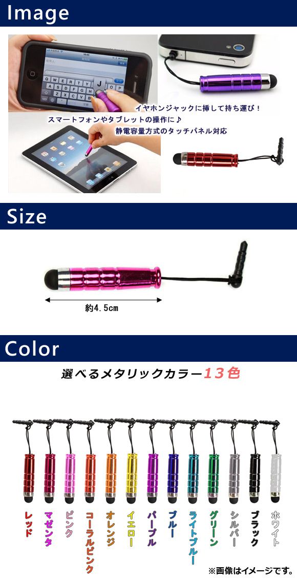 AP ミニタッチペン スマートフォン操作に 小型で楽々持ち運び ストラップタイプ 選べる13カラー AP-TH736 カラー: ブラック ホワイト レッド ブルー イエロー グリーン オレンジ パープル ピンク シルバー マゼンタ コーラルピンク ライトブルー