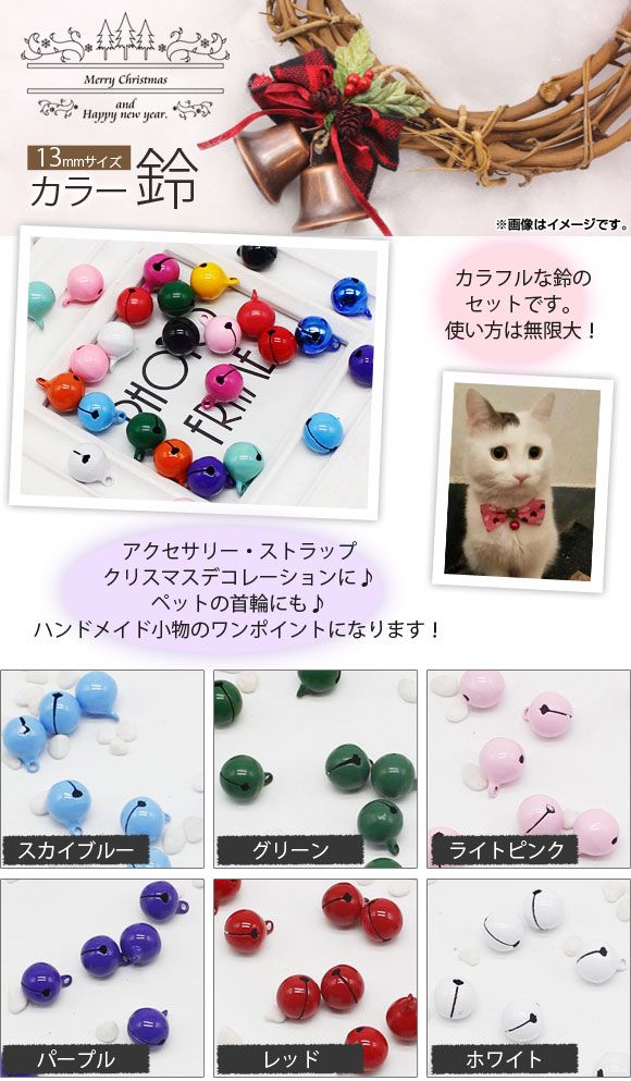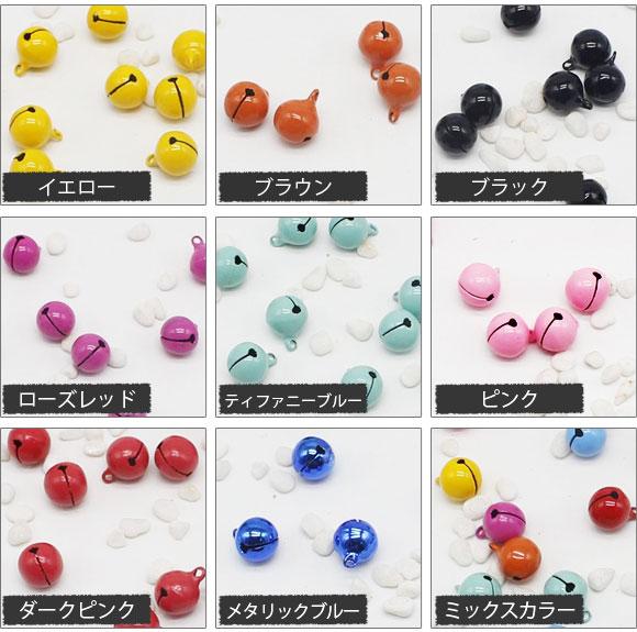 カラー鈴 すず 約13mm ハンドメイド アクセサリーに♪ MerryChristmas♪ 選べる15カラー 入数:1セット(10個) AP-UJ0069-10 カラー: ブラック ホワイト レッド イエロー グリーン パープル ピンク ブラウン ミックスカラー スカイブルー ティファニーブルー メタリックブルー ライトピンク ローズレッド ダークピンク