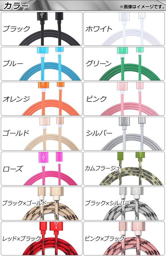 ナイロン編みケーブル 同期/充電/データ転送に!