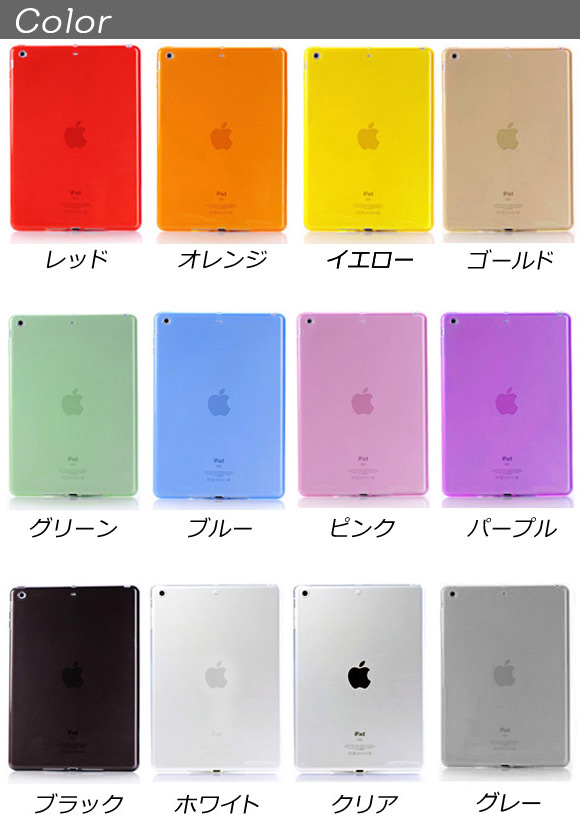 AP iPadソフトケース セミクリア TPU素材 キズや衝撃からガード 選べる12カラー mini1/2/3/4 AP-TH201 カラー: ブラック ホワイト レッド ブルー イエロー グリーン オレンジ パープル ピンク グレー クリア ゴールド