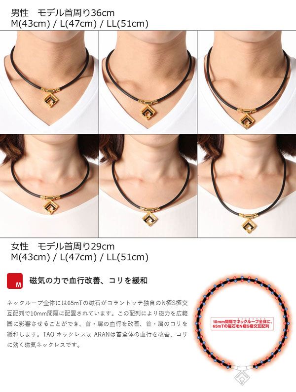 コラントッテ/Colantotte TAO ネックレスα ARAN シルバー 男女兼用 磁気ネックレス【日本正規品】 選べる3サイズ ABARD サイズ: M L LL