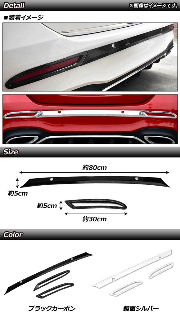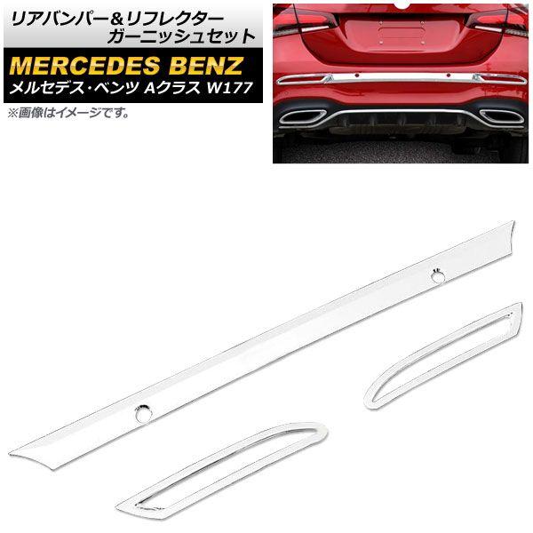 リアバンパー&リフレクターガーニッシュセット メルセデス・ベンツ Aクラス W177 A180/200/250 2018年〜 鏡面シルバー ABS製 入数:1セット(3個) AP-XT831-KSI