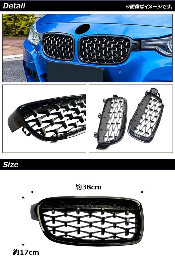 フロントグリルカバー BMW 3シリーズ F30/F31/F35 2012年〜2019年 シルバー Bタイプ ABS製 入数:1セット(2個) AP-FG273-B AP ダイヤモンド型グリル フロントグリルガーニッシュ バンパーグリルカバー バンパーグリルガーニッシュ グリルガーニッシュ グリルカバー バンパーガーニッシュ フロントグリル フロント フロントフェイス グリル バンパー カバー フレーム ガーニッシュ リム トリム ベゼル メッキ メッキパーツ プロテクト プロテクター 傷予防 傷付き防止 外装 外装パーツ パーツ エクステリア ドレスアップ カスタム カスタマイズ 装飾 装飾パーツ ABS ABS樹脂 銀 SILVER クローム CHROME 鏡面 ミラー MIRROR