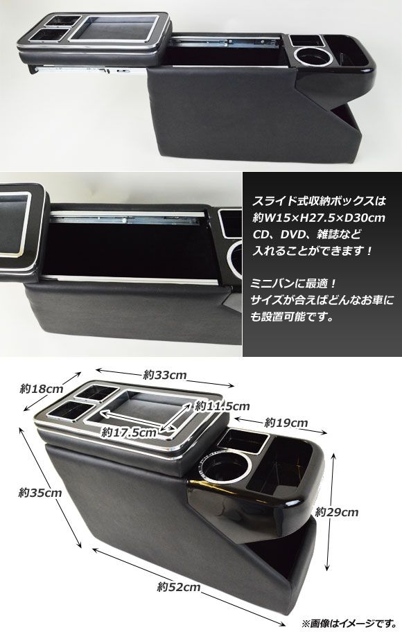 ※コンソールボックスの高さが約35cmありますので、ひじ置きがある車はひじ置きの高さをご確認下さい