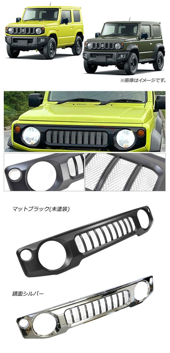 フロントグリルカバー スズキ ジムニー/ジムニーシエラ JB64W/JB74W 2018年07月〜 鏡面シルバー ABS製 AP-FG366-KSI