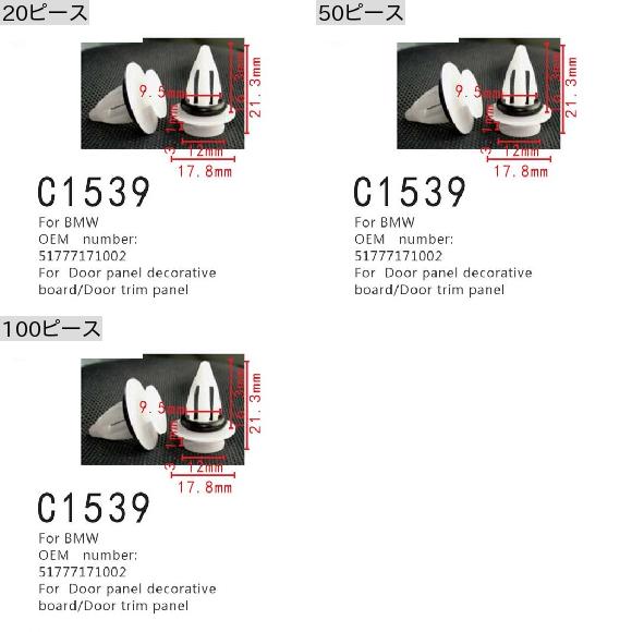 ボード クリップ 適用: BMW X3 F25 X4 F26 X5 E70 F15 X6 E71 E72 X6 F16 ミニ/MINI(BMW) R60 R61 51777171002ドア トリム パネル ファスナー バックル 50ピース AL-MM-0874 AL