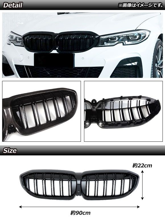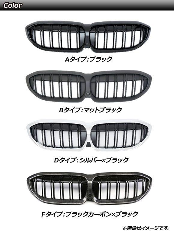 フロントグリルカバー BMW 3シリーズ G20/G28 カメラ装着車対応 2019年〜 シルバー×ブラック Dタイプ ABS製 ダブルバー カメラホール付き AP-FG291-D