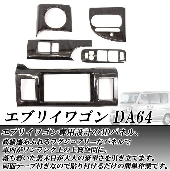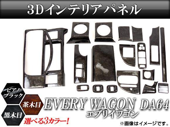 3Dインテリアパネル スズキ エブリイワゴン DA64 2005年〜 選べる3インテリアカラー 入数:1セット(19個) AP-INT-026 インテリアカラー: 黒木目 茶木目 ピアノブラック