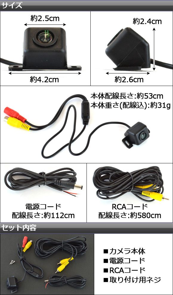 映像出力はRCA(ビデオ出力)なので殆どのナビ、モニターに対応します。