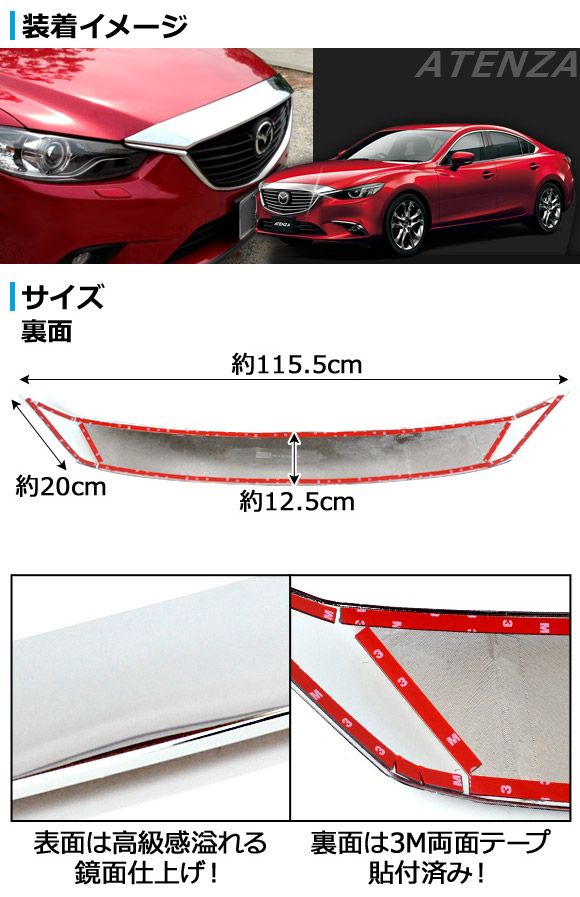 メッキフロントグリルガーニッシュ マツダ アテンザセダン/ワゴン GJ系 2012年11月〜 鏡面仕上げ AP-ENGC-M11 AP GJEFP GJ2FP GJ5FP GJEFW GJ2FW GJ5FW ボンネットガーニッシュ ボンネットカバー フロントガーニッシュ メッキボンネットガーニッシュ フロントグリルカバー フロントグリルガーニッシュ ATENZA アテンザ セダン ワゴン グリル フロントグリル バンパー ボンネット カバー メッキパーツ ガーニッシュ クローム メッキ パーツ シルバー 銀 SILVER 外装 エクステリア カスタム カスタムパーツ ドレスアップ フロント front 前面 正面 ABS automobile motorcar オートモービル モーターカー カー 車 自動車 車両 フロントリップカバー リップカバー フロントリップ