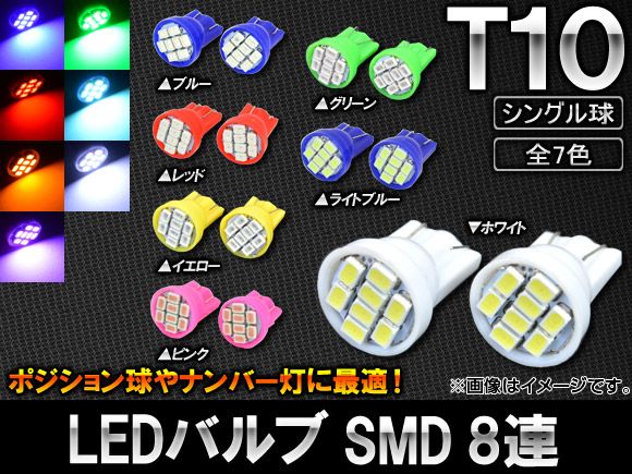 AP LEDバルブ T10 SMD 8連 選べる7カラー AP-SINA-LED001 入数:2個