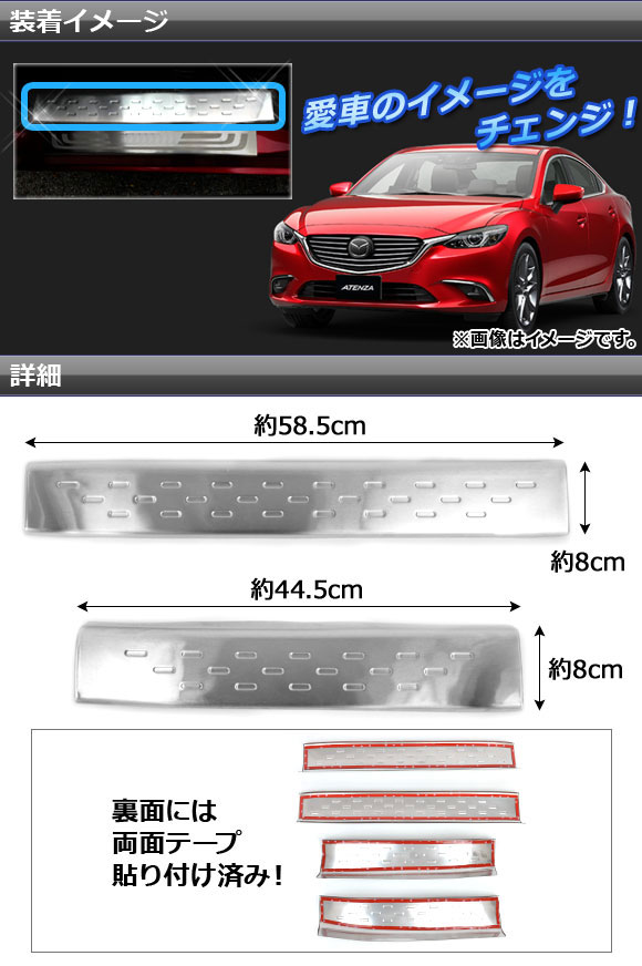 AP ステップガード 内側 ステンレス APSINA-ATENZA013 入数:1セット(4枚) マツダ アテンザ(セダンのみ) GJ系 2012年11月〜