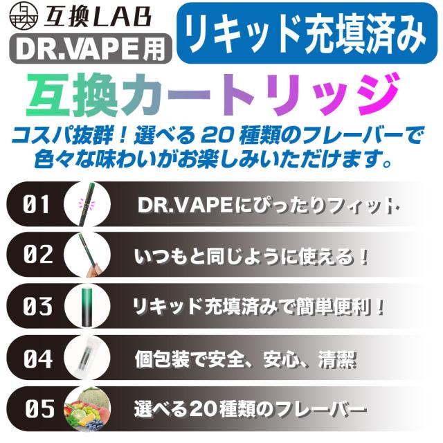 互換LAB(R) ドクターベイプ用 互換カートリッジ DR.VAPE用 互換ラボ 20フレーバー メンソール ミント 使い捨て リキッド 充填済み コスパ 再生 個包装 電子タバコ 電子たばこ VAPE 爆煙