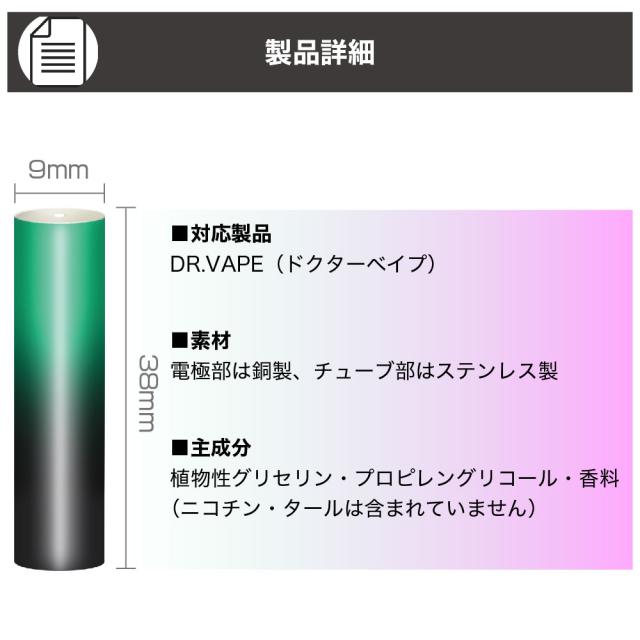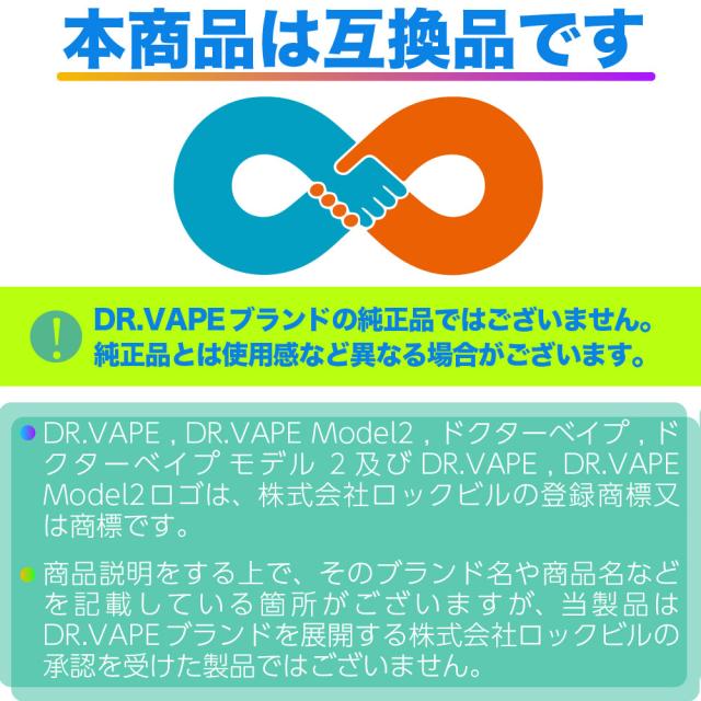 ※ 商品説明の便宜上、そのブランド名や商品名などを記載する場合がありますが、当製品は、DR.VAPEブランドを展開する株式会社ロックビルの承認を受けた製品ではございません。
