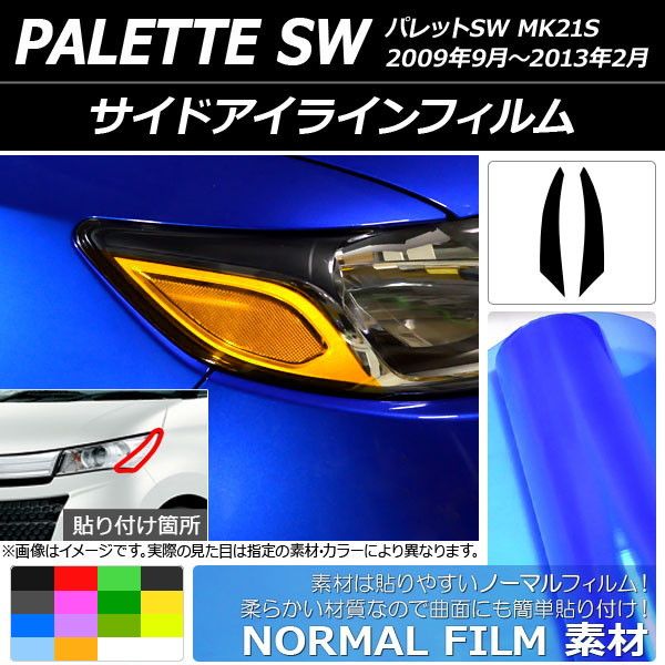 サイドアイラインフィルム ノーマルタイプ スズキ パレットSW MK21S 2009年09月〜2013年02月 選べる14カラー 入数:1セット(2枚) AP-YLNM176 カラー: ブラック レッド ブルー イエロー グリーン オレンジ パープル ピンク マットブラック ライトイエロー ライトグリーン ライトブルー ライトブラック イエローグリーン