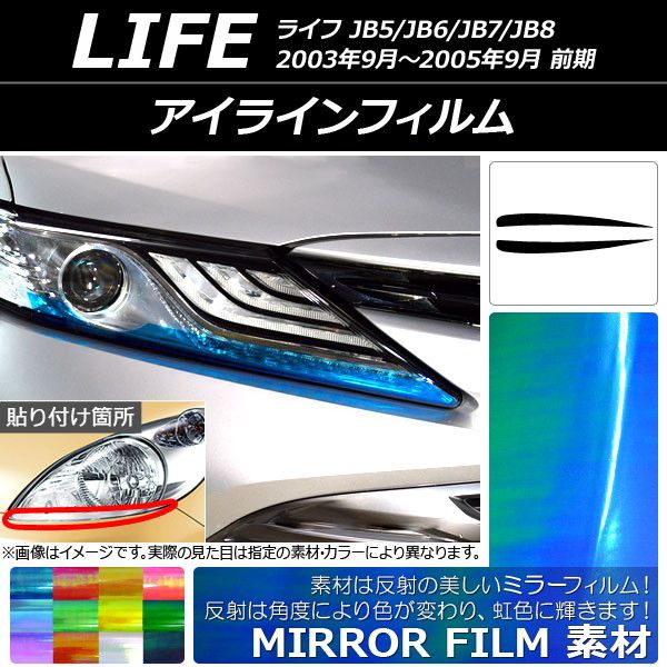 アイラインフィルム ホンダ ライフ JB5/6/7/8 前期 2003年09月〜2005年09月 ミラータイプ 選べる12カラー AP-YLMI066 入数:1セット(2枚)