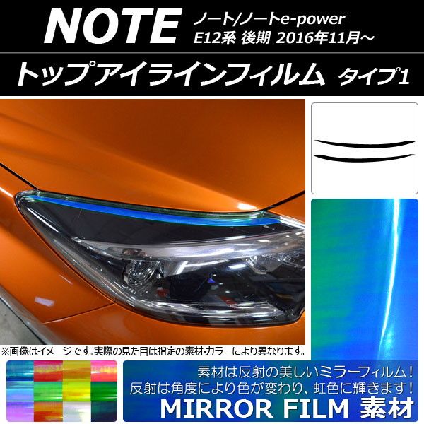 トップアイラインフィルム ニッサン ノート/ノートe-power E12系 後期 2016年11月〜 ミラータイプ タイプ1 選べる12カラー AP-YLMI100 入数:1セット(2枚)