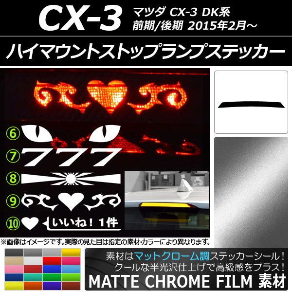 ハイマウントストップランプステッカー マットクローム調 マツダ CX-3 DK系 前期/後期 2015年02月〜 選べる20カラー タイプグループ2 AP-MTCR3372