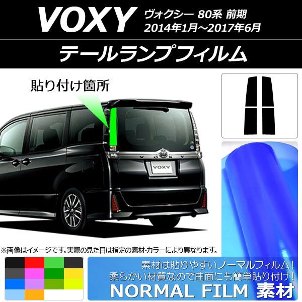 テールランプフィルム ノーマルタイプ トヨタ ヴォクシー 80系 前期 2014年01月〜2017年06月 選べる14カラー 入数:1セット(4枚) AP-YLNM212 カラー: ブラック レッド ブルー イエロー グリーン オレンジ パープル ピンク マットブラック ライトイエロー ライトグリーン ライトブルー ライトブラック イエローグリーン