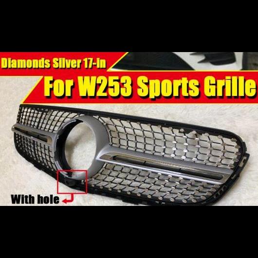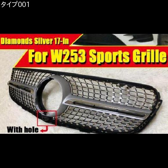 AL 車用外装パーツ 適用: メルセデス W253 C253 X253 GLCクラス SUV GLC250 GLC350 スポーツ フロント ダイヤモンド グリッド グリル ABS シルバー カメラホールなし 17 タイプ001 AL-EE-0352