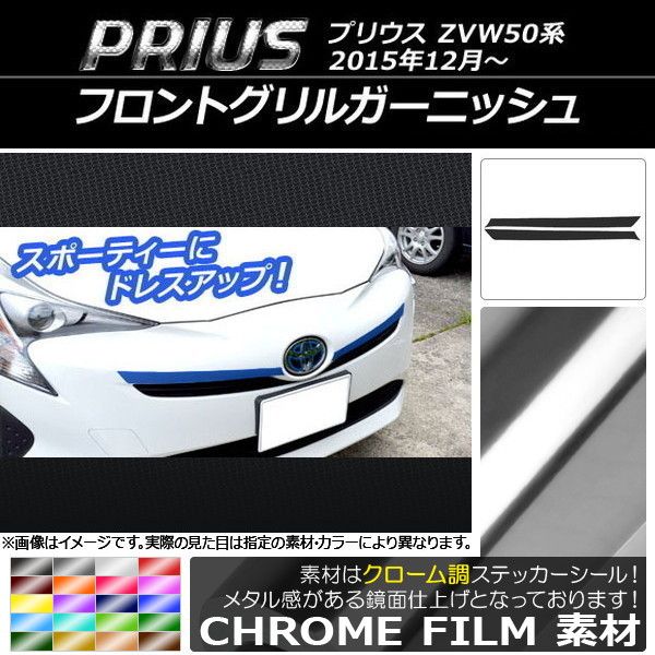 AP フロントグリルガーニッシュステッカー クローム調 トヨタ プリウス ZVW50,ZVW51,ZVW55 2015年12月〜 選べる20カラー AP-CRM317 入数:1セット(2枚)