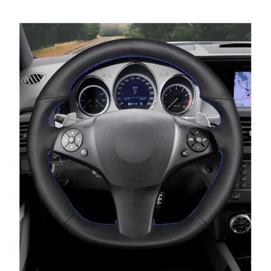 手縫い ブラック PUレザー ステアリング ホイール カバー 適用: メルセデス ベンツ SLRクラス 2009 SLクラス AMG 63 65 2009-2012 ブラック糸〜グレー糸 AL-EE-8062 AL