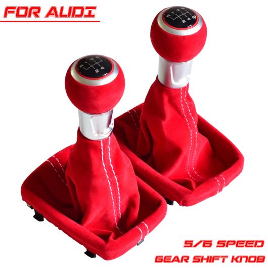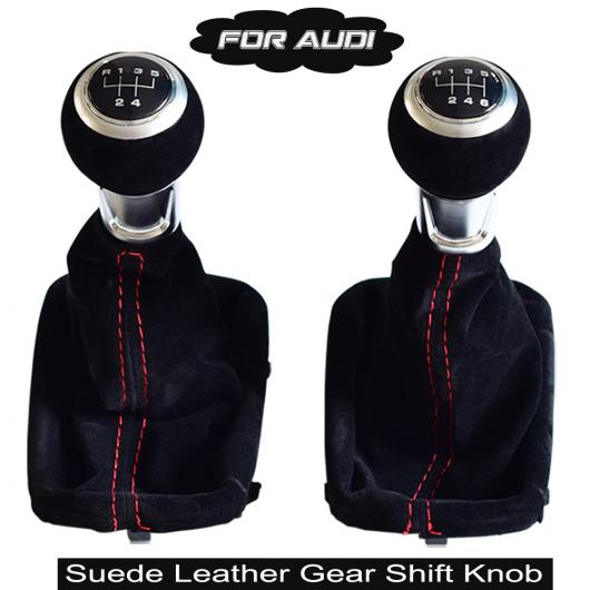 AL ギア シフター ノブ マニュアル スティック レバー スウェード レザー ブーツ カバー 適用: アウディ A3 S3 2001 2002 2003 5速・ブラック〜6速・レッド AL-EE-3944