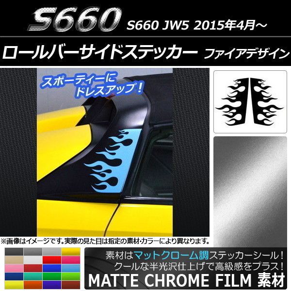 ロールバーサイドステッカー マットクローム調 ファイアデザイン ホンダ S660 JW5 2015年04月〜 選べる20カラー 入数:1セット(2枚) AP-MTCR2066