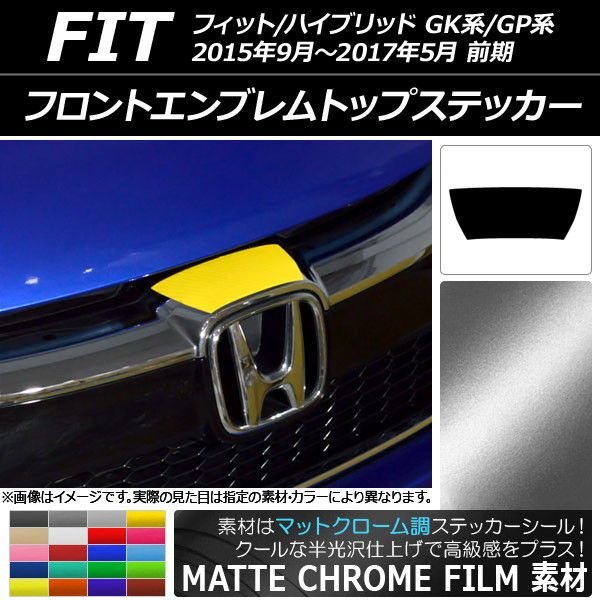 フロントエンブレムトップステッカー マットクローム調 ホンダ フィット/ハイブリッド GK系/GP系 前期 2015年09月〜2017年05月 選べる20カラー AP-MTCR2258