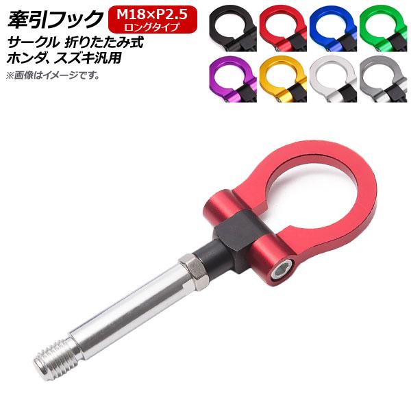 牽引フック M18×P2.5 ロング サークル 折りたたみ式 アルミ製 ホンダ、スズキ汎用 選べる8カラー AP-XT367-C