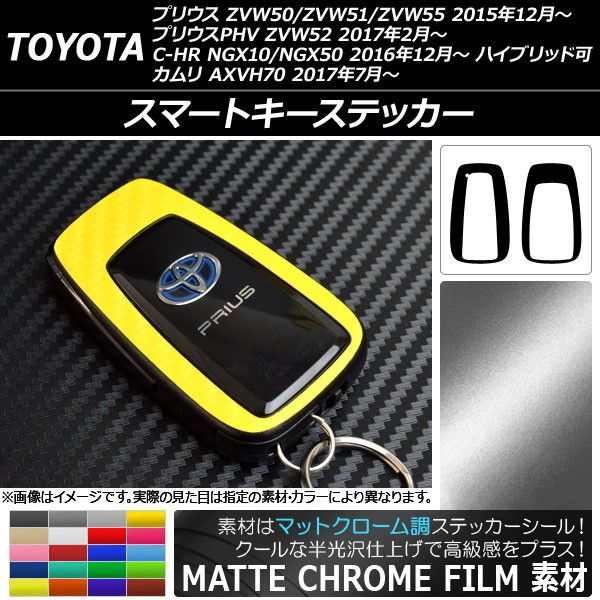 スマートキーステッカー マットクローム調 トヨタ プリウス/プリウスPHV/C-HR/カムリ ZVW50系/NGX/XV70系 選べる20カラー 入数:1セット(2枚) AP-MTCR300