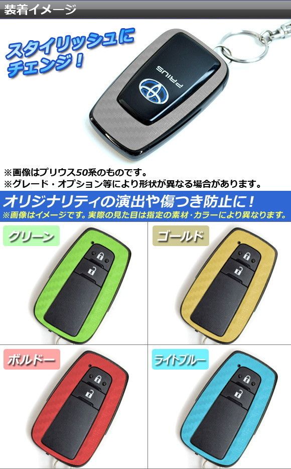 スマートキーステッカー マットクローム調 トヨタ プリウス/プリウスPHV/C-HR/カムリ ZVW50系/NGX/XV70系 選べる20カラー 入数:1セット(2枚) AP-MTCR300 カラー: ブラック ホワイト レッド ブルー イエロー グリーン オレンジ パープル ピンク ネイビー ブラウン ボルドー ゴールド シルバー ガンメタリック マゼンタ ライトグリーン ライトブルー ライトゴールド シアン