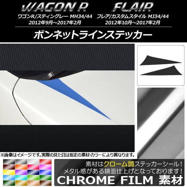 ボンネットラインステッカー スズキ/マツダ ワゴンR/スティングレー,フレア/カスタムスタイル クローム調 選べる20カラー 入数:1セット(2枚) AP-CRM977