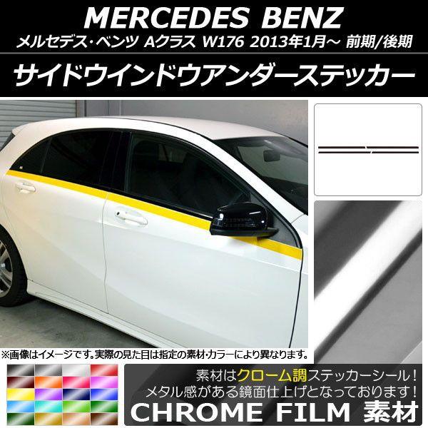 サイドウインドウアンダーステッカー メルセデス・ベンツ Aクラス W176 2013年01月〜 クローム調 選べる20カラー AP-CRM2760 入数:1セット(4枚)