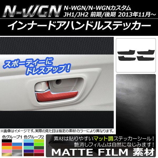 インナードアハンドルステッカー マット調 ホンダ N-WGN/N-WGNカスタム JH1/JH2 前期/後期 2013年11月〜 色グループ1 入数:1セット(4枚) AP-CFMT465 色グループ1: ブラック ホワイト レッド ブルー イエロー オレンジ ピンク グレー ゴールド シルバー