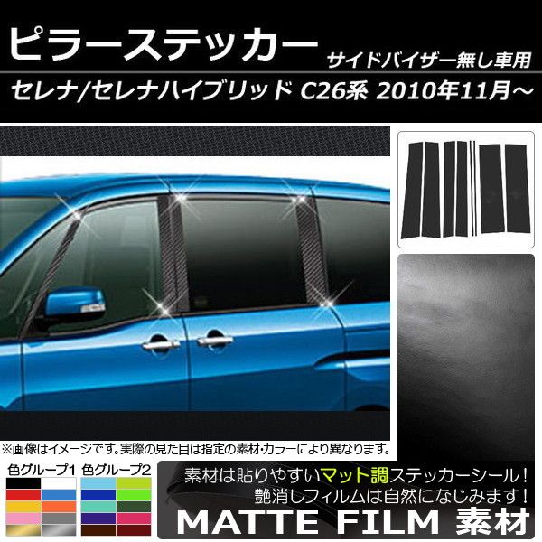 AP ピラーステッカー マット調 ニッサン セレナ/セレナハイブリッド C26系 サイドバイザー無し用 2010年11月〜 色グループ1 AP-CFMT206 入数:1セット(8枚)