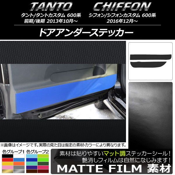 ドアアンダーステッカー ダイハツ/スバル タント/カスタム,シフォン/カスタム 600系 マット調 色グループ1 入数:1セット(2枚) AP-CFMT943 色グループ1: ブラック ホワイト レッド ブルー イエロー オレンジ ピンク グレー ゴールド シルバー