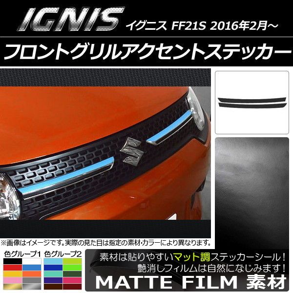 フロントグリルアクセントステッカー スズキ イグニス FF21S 2016年2月〜 マット調 色グループ2 AP-CFMT1611 入数:1セット(2枚)