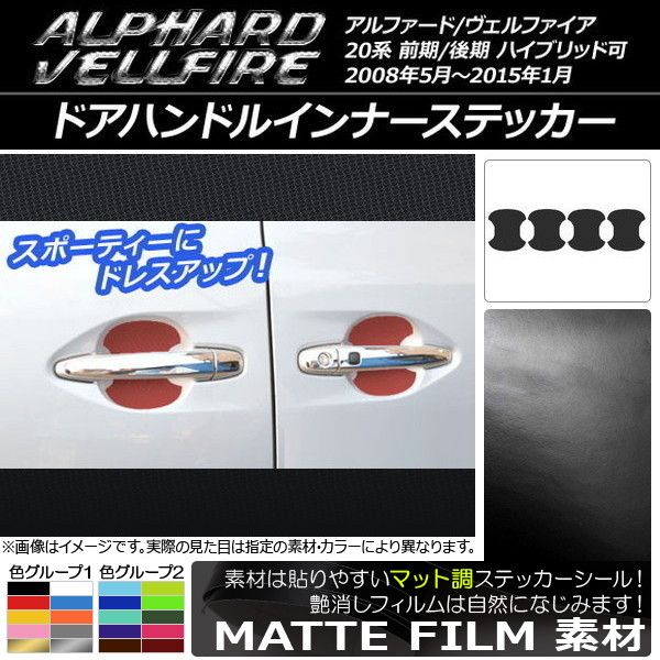 ドアハンドルインナーステッカー マット調 トヨタ アルファード/ヴェルファイア 20系 前期/後期 ハイブリッド可 色グループ2 入数:1セット(4枚) AP-CFMT709