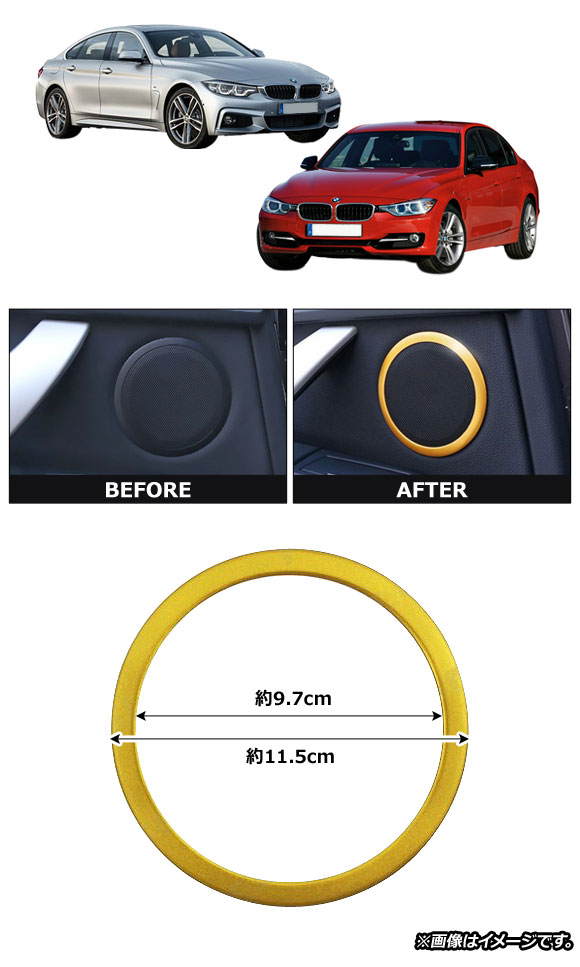 AP スピーカーリングカバー ゴールド アルミ製 AP-IT331-GD 入数:1セット(4個) BMW 3シリーズ F30/F31/F34/F35 2012年01月〜 スピーカーフレーム スピーカーカバー スピーカーリングガーニッシュ スピーカーリング スピーカートリム サイドフレーム ドアスピーカー サイドドア サイド ドア スピーカー グリル リング フレーム 縁 ふち パネル カバー ガーニッシュ リム トリム 金 gold 保護 プロテクト プロテクター 傷予防 傷付き防止 内装 パーツ インテリア ドレスアップ カスタム カスタマイズ 装飾 アクセサリー アクセサリ