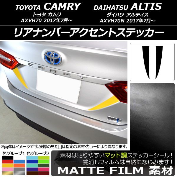 リアナンバーアクセントステッカー マット調 トヨタ/ダイハツ カムリ/アルティス XV70系 2017年07月〜 色グループ1 入数:1セット(2枚) AP-CFMT3117