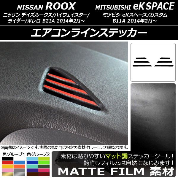 エアコンラインステッカー マット調 ニッサン/ミツビシ デイズルークス/eKスペース B21A/B11A 2014年02月〜 色グループ1 入数:1セット(6枚) AP-CFMT3579 色グループ1: ブラック ホワイト レッド ブルー イエロー オレンジ ピンク グレー ゴールド シルバー