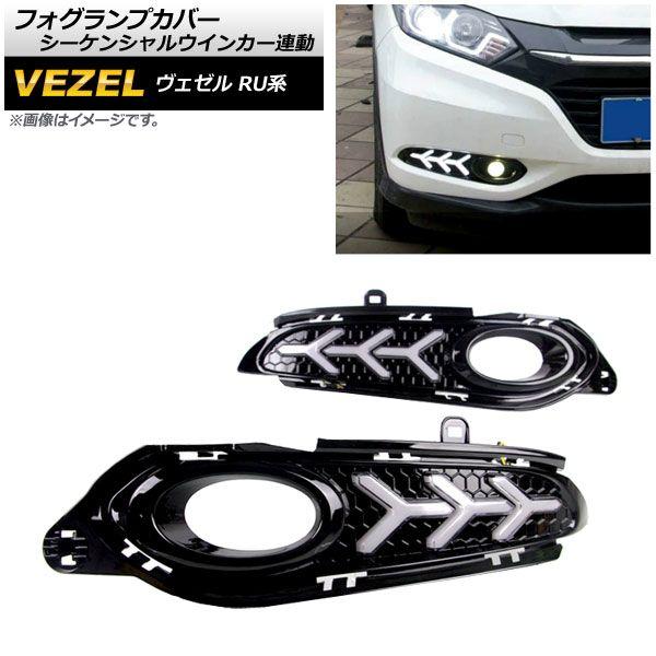 フォグランプカバー ホンダ ヴェゼル RU1/2/3/4 2014年〜2018年 デイライト付き シーケンシャルウインカー連動 3段階点灯 入数:1セット(左右) AP-FL106-3