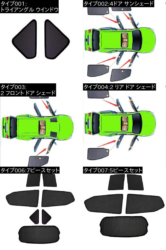 ・タイプ003:2 フロント ドア シェード・タイプ004:2 リア ドア シェード